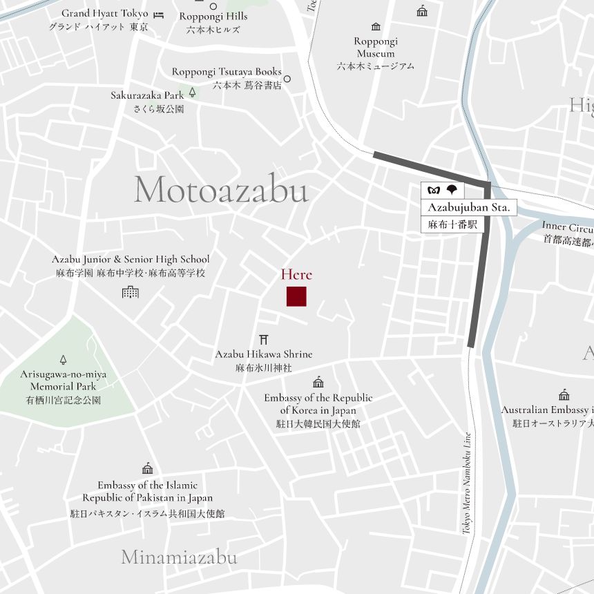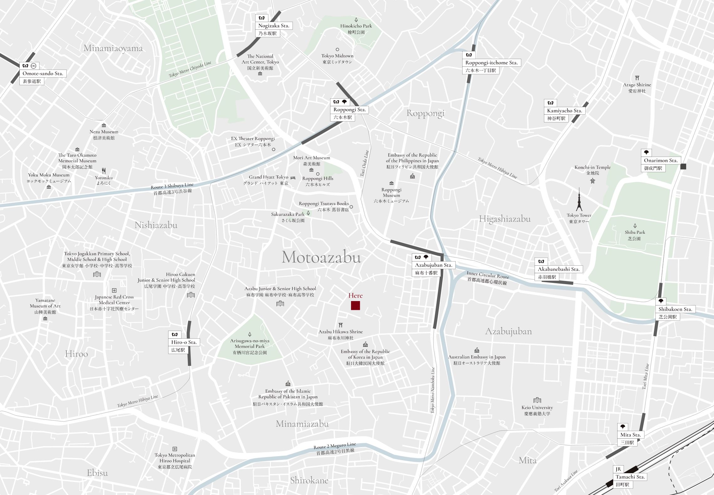 Motoazabu is a district that is truly global, even amongst the standards of a cosmopolitan city like Tokyo. In a forest of embassies, lined with historic and elegant residences, adjacent to Roppongi, Akasaka, Tokyo Tower, and cultural facilities like art museums, Motoazabu has evolved into one of the world’s most alluring neighborhoods.